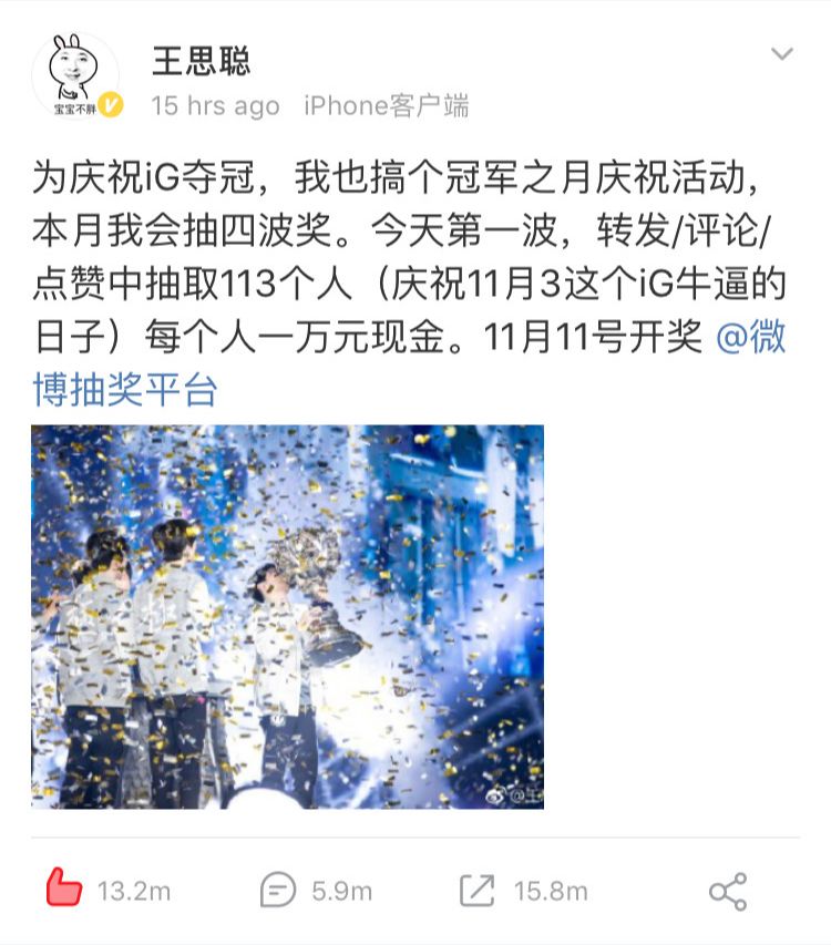IG奪冠更是直接引爆微博和朋友圈