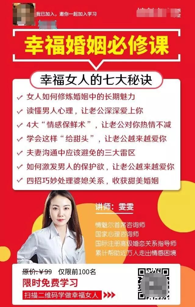 這一次做裂變的獎品是教大家處理家庭關系的情感課程,符合用戶需求,用線上課程作獎品也大大節約了活動成本。